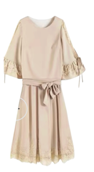 結婚式のお呼ばれシーンで40代女性の魅力を引き立てる上品なドレスです。