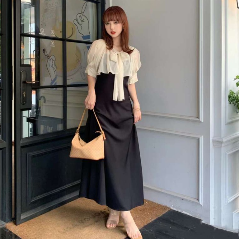 適度な袖丈と丈感で、露出を控えめに抑えながらも女性らしさを演出しています。
