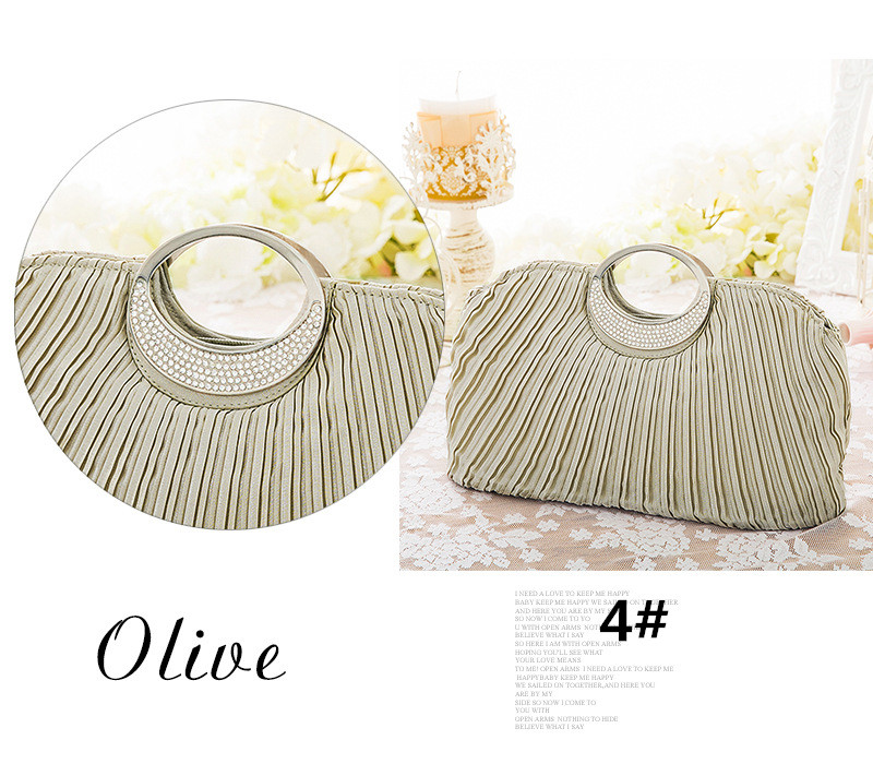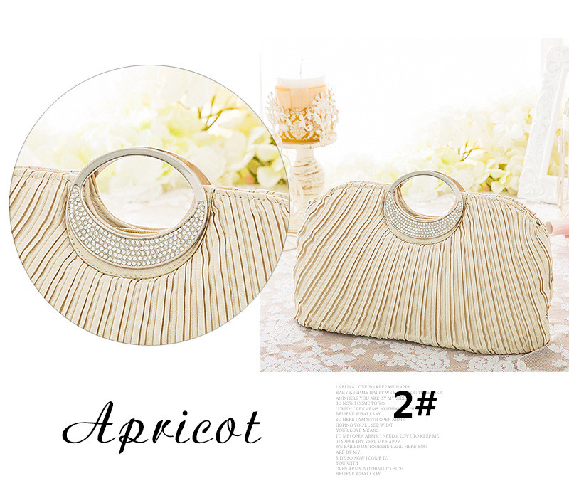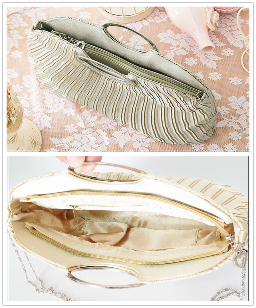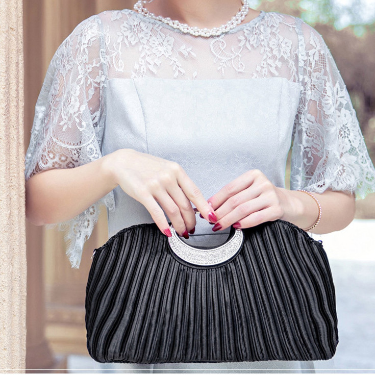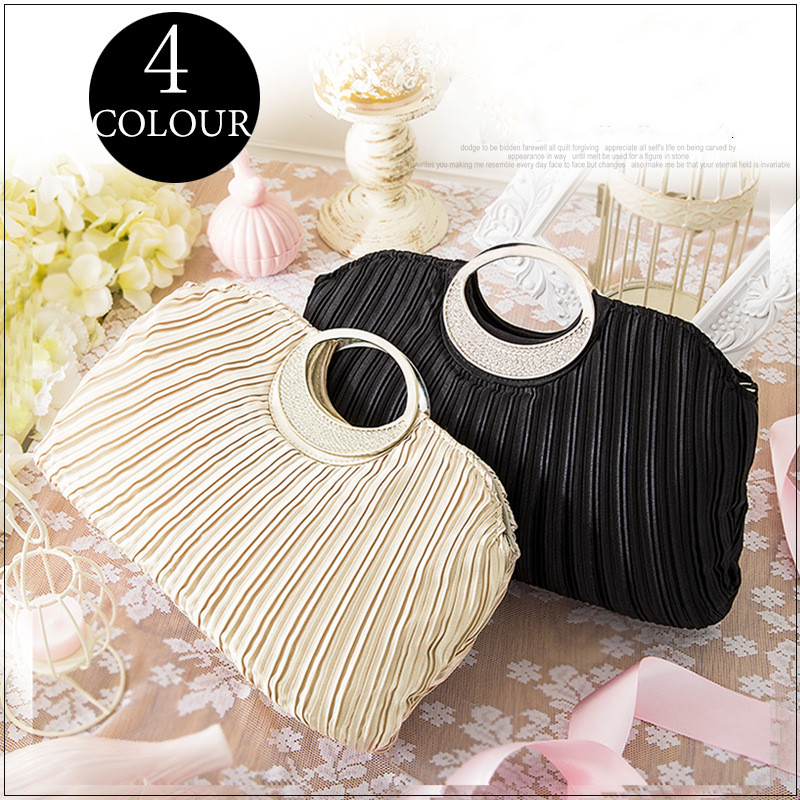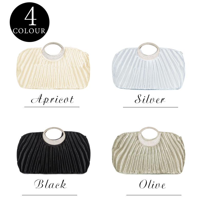 上品なプリーツ加工が美しい結婚式お呼ばれドレスに最適なパーティーバッグ。 エレガントなサークルハンドルで大人可愛く仕上がった逸品です。 財布やスマートフォンなどの必需品もしっかり収納でき、内ポケット付きで小物管理も安心。 披露宴から二次会まで幅広いシーンでお使いいただけます。