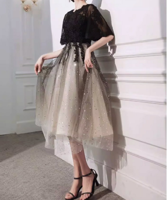バイカラーのワンピースです。トップス部分の黒い生地に花柄のレースがエレガント。 背中のデザインと、程よいシースルーが上品な女性らしさを演出します。 白の生地のスカート部分のラメが華やかさをプラスします。 モノトーンが好きだけど、暗くしたくない!そんな貴方におすすめです。