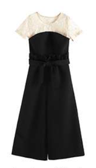 上品なレースのトップスとウエストリボンで女性らしさを引き立てる,カジュアルでもフォーマルでも活躍する万能ドレス。