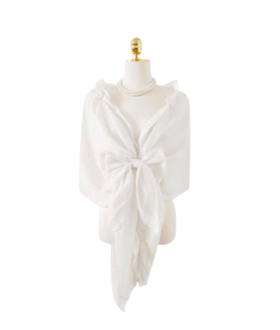 "4色展開の豪華レースとパールがアクセントのワンサイズショール。どんな装いにも合わせやすく,特別な日のおしゃれに最適。"