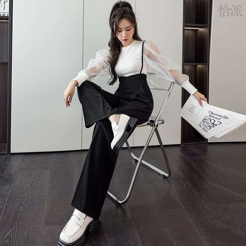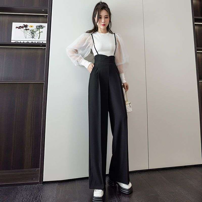 洗練されたモノトーンデザインが特徴的なパンツドレス。白のシアートップスと黒のハイウエストワイドパンツの組み合わせが、スタイリッシュでモダンな印象を演出。パーティーやフォーマルシーンに最適な一着です。