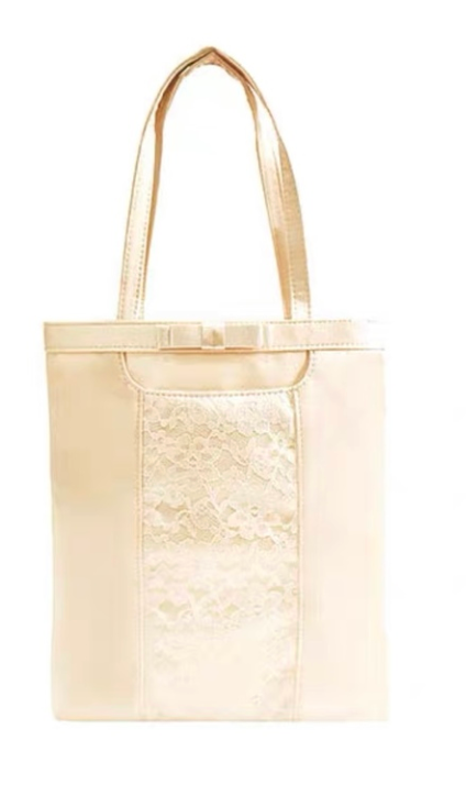 手持ちにちょうどよいハンドバッグです。側面のレースの柄がとてもエレガントでおしゃれなアイテムです。
