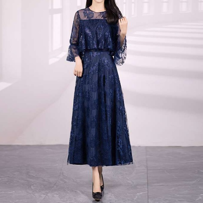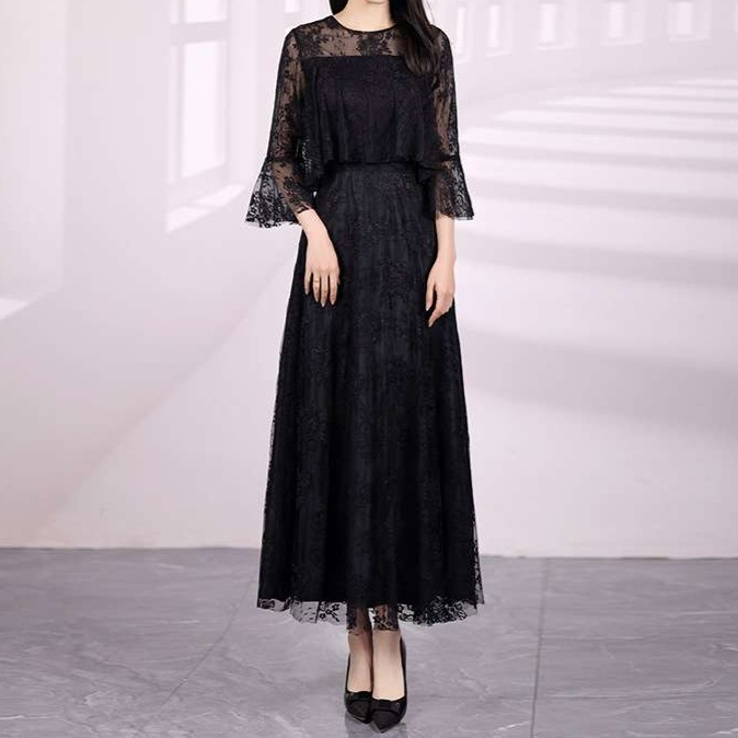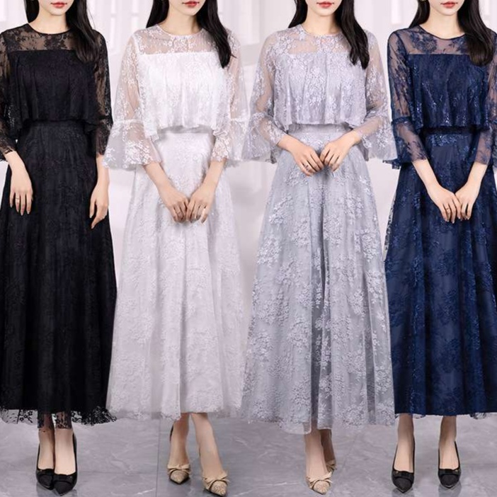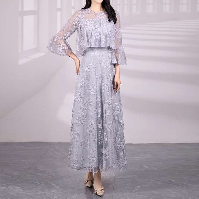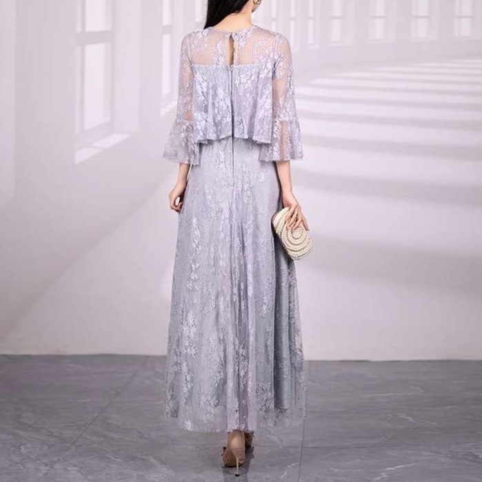 結婚式お呼ばれドレスにふさわしい上品な花柄レースのマキシワンピ。