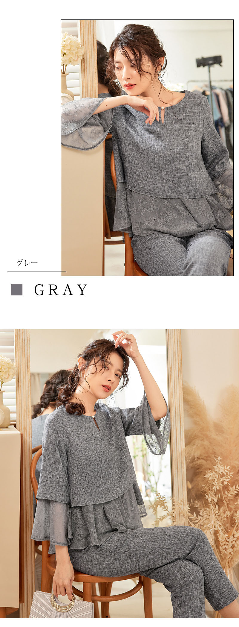 結婚式お呼ばれドレスに最適なパンツドレスのセットアップです。