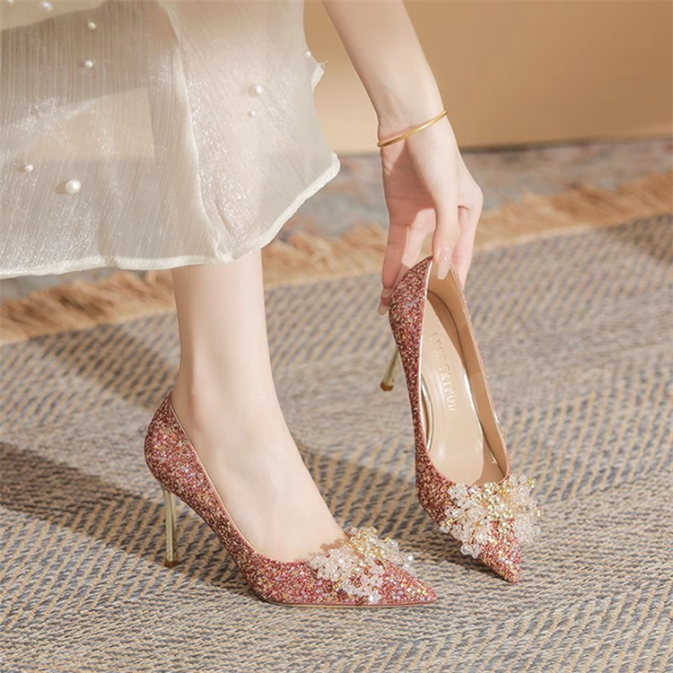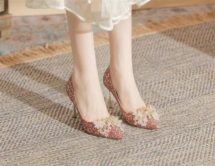 キラキラと輝くビジューとスパンコールが足元を美しく演出します。