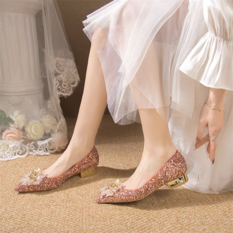 結婚式お呼ばれドレスにぴったりの華やかな花嫁用の靴です。