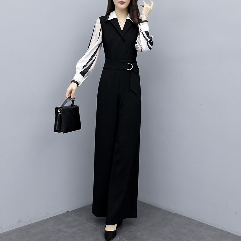 テーラード襟のベストとワイドパンツを組み合わせた洗練されたデザインが特徴です。