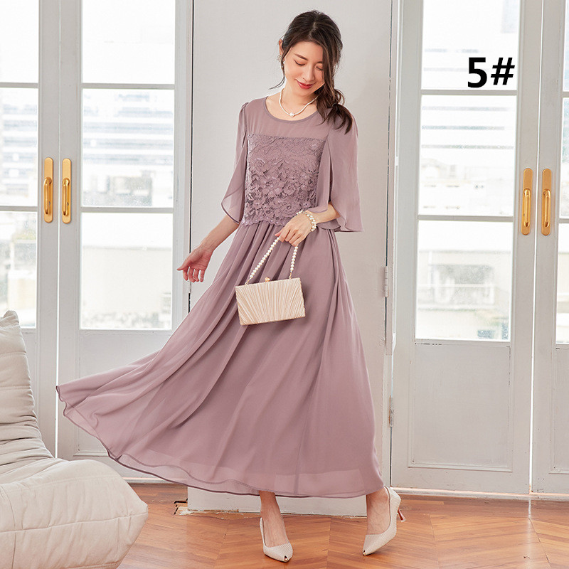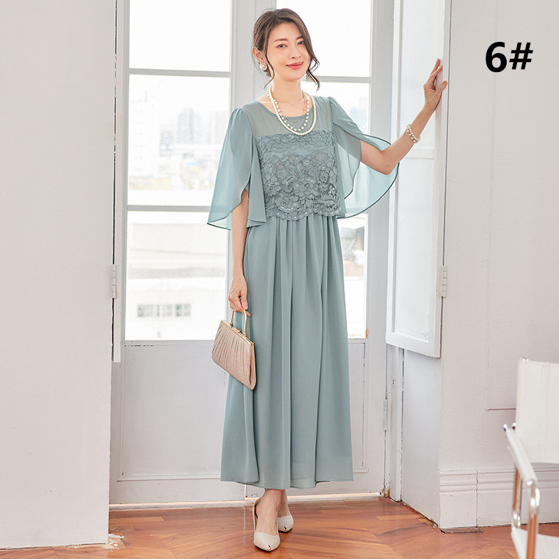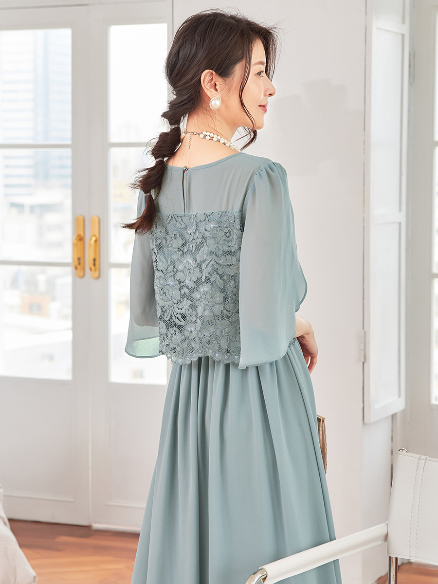 袖付きデザインで品よく着こなせ、大人の女性にぴったりのエレガントなドレスです。