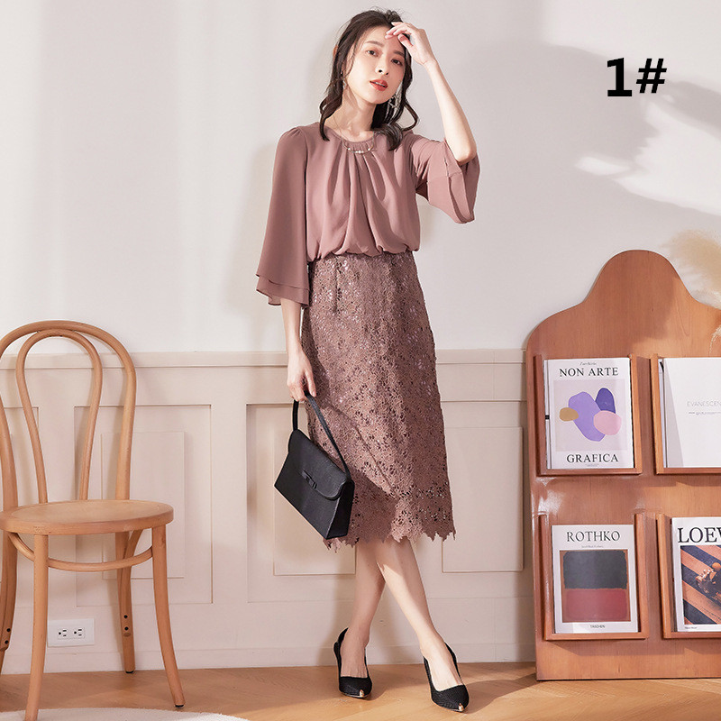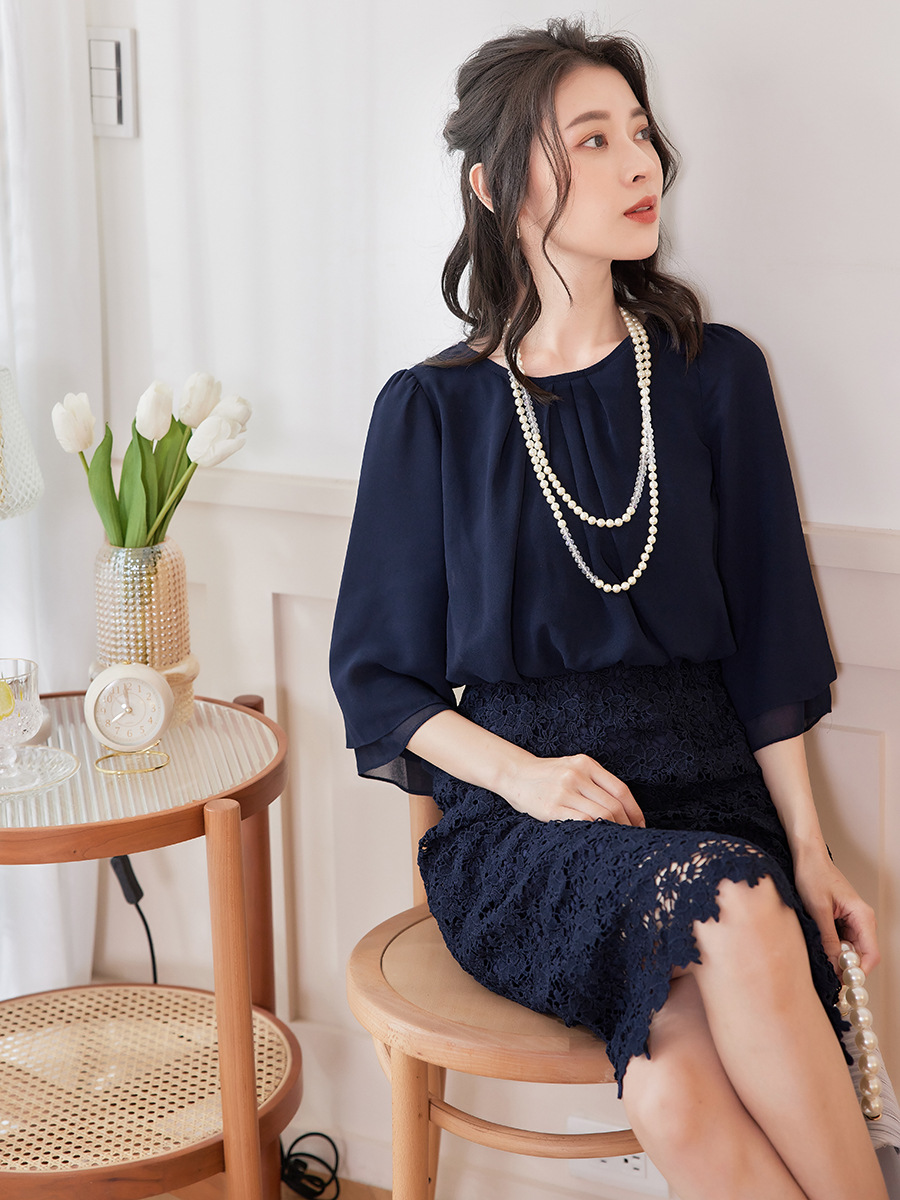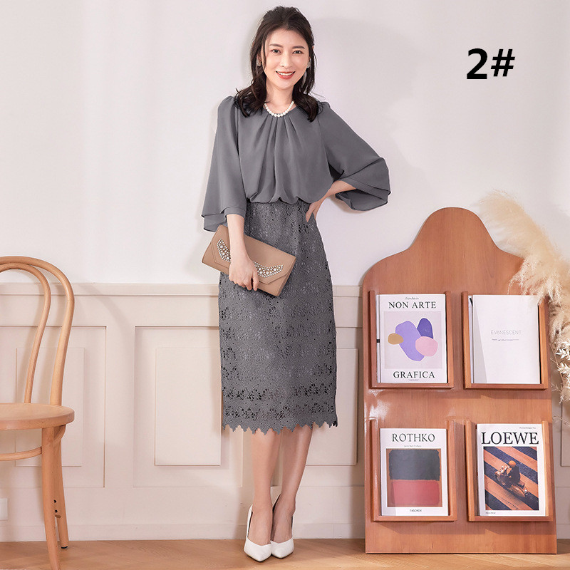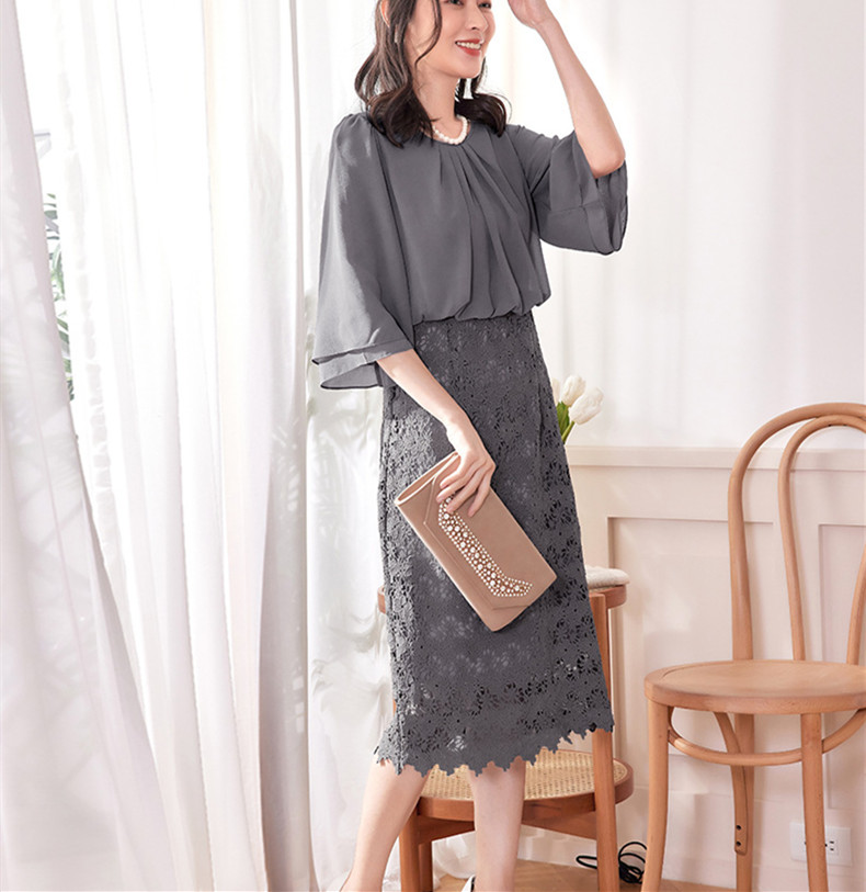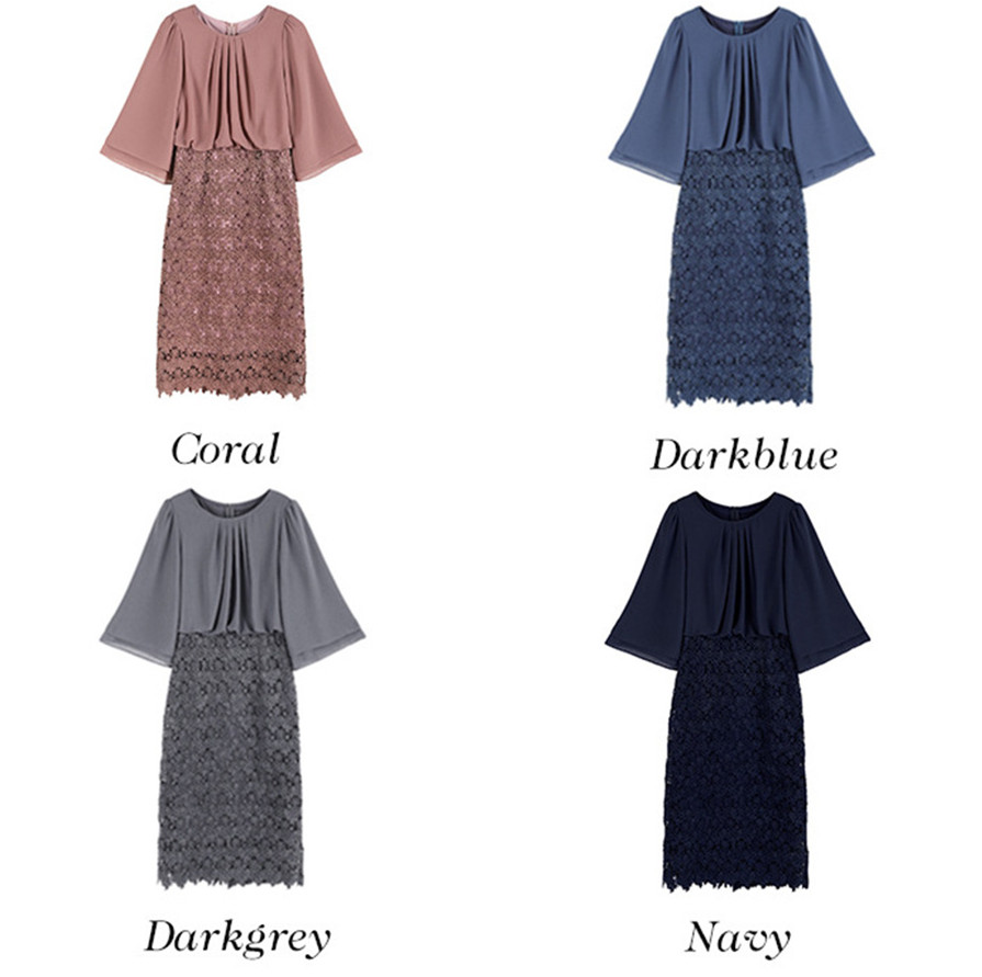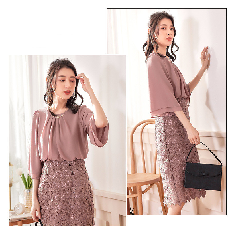シフォンとレースの異素材を組み合わせ、結婚式お呼ばれドレスにぴったり。