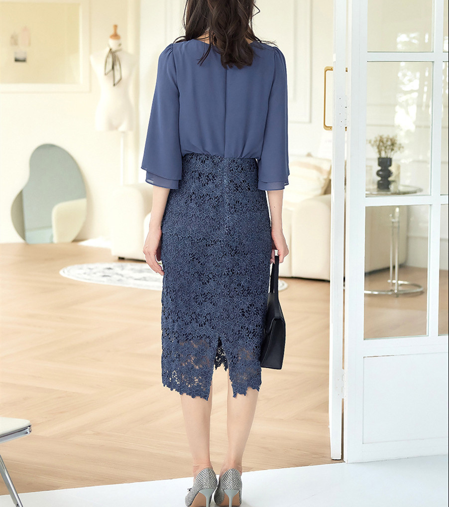 上品で優しい雰囲気を演出するレース切替ワンピース。